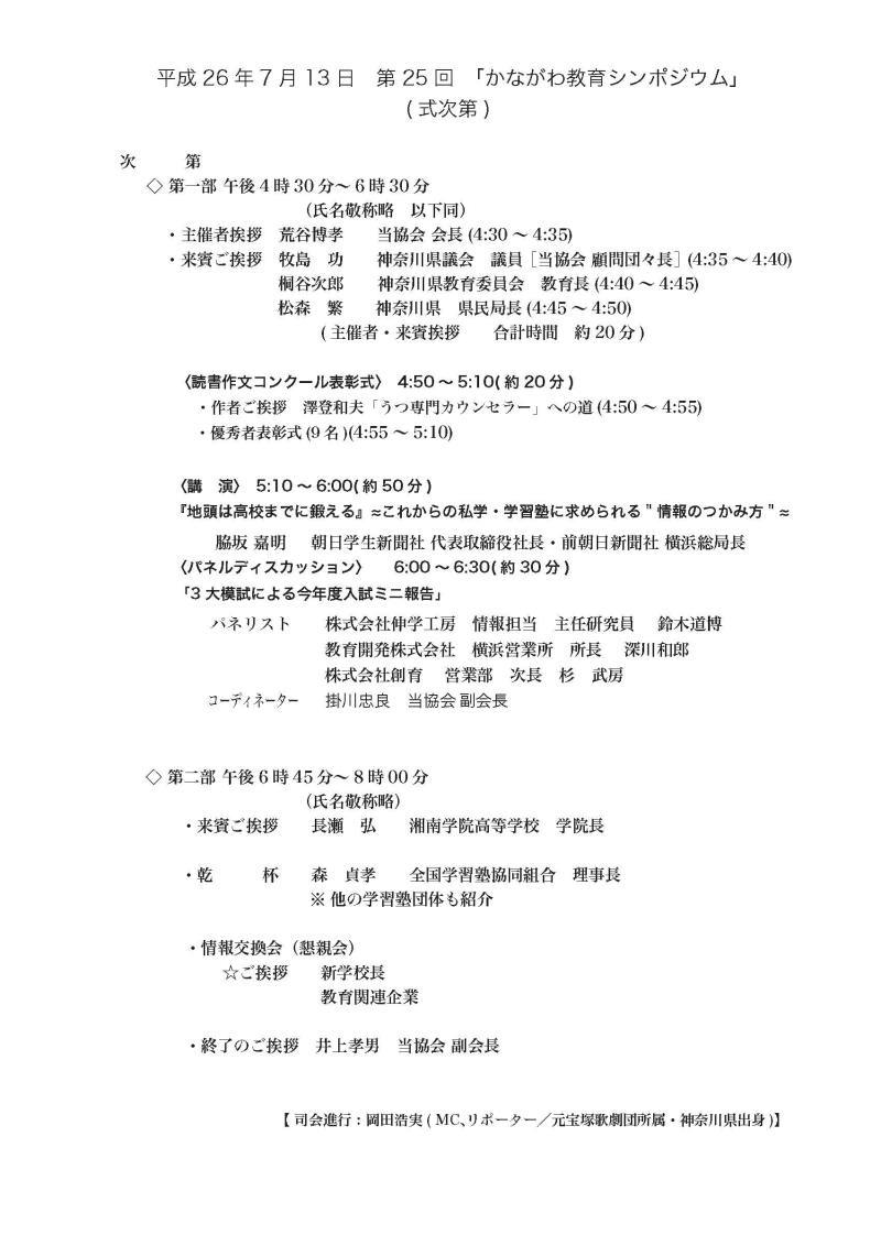 | 平成26 年7 月13 日 第25 回 「かながわ教育シンポジウム」 |